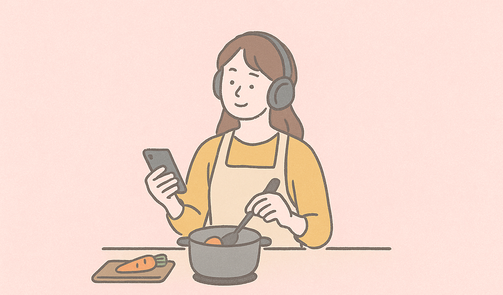 仕事の日は、移動中の1時間、講義動画を聴きます。家事の合間にも音声で講義を聴いています。